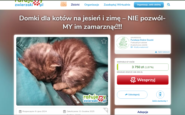 Dziękujemy za każde wsparcie – udostępnienie zbiórki, darowizny i pomoc w szerzeniu wiedzy o potrzebach kotów wolno żyjących.